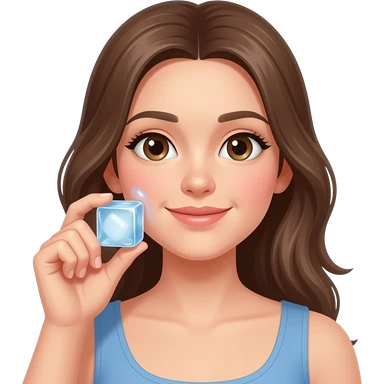 A girl holding an ice cube and rubbing it on her face. emoji