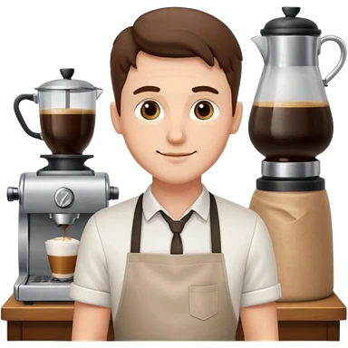 barista boy with apron and coffee beans emoji