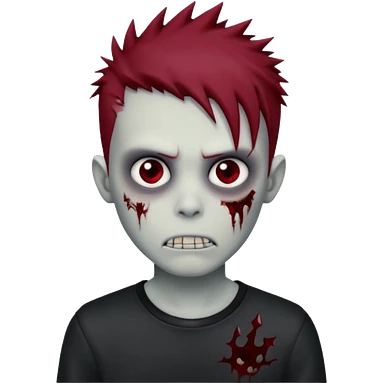 zombie boy with dark red spiky emo hair and black shirt emoji