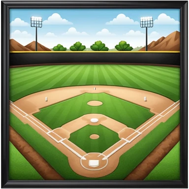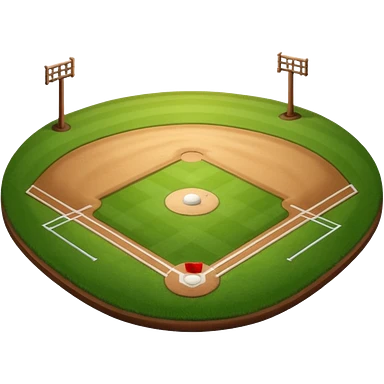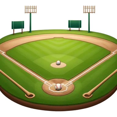 A baseball bat, ball, and glove placed on the grass of a baseball field, with the diamond and base lines clearly visible in the background. The scene captures the essence of the sport, with the equipment ready for action on the neatly marked field. emoji