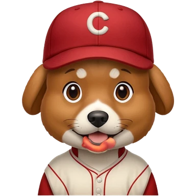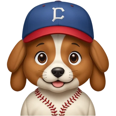Dog wearing a hat and hoodie with a baseball glove and baseball emoji