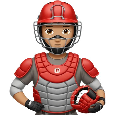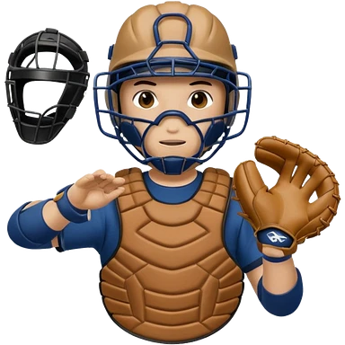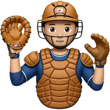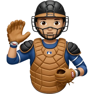 Baseball catcher, with glove up and in the foreground, ready to catch the ball emoji