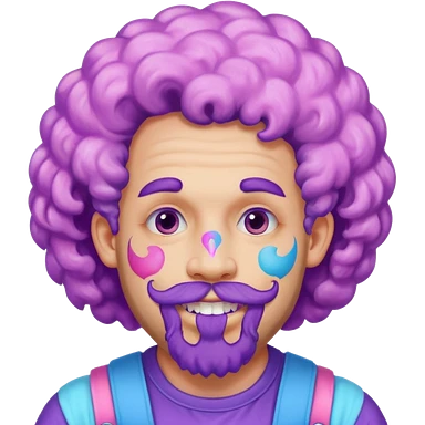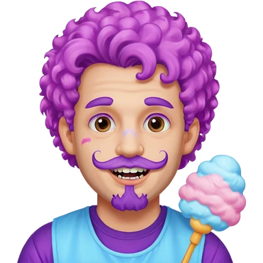 very colorful puffy violet curly haired man just beard no mustache made out of cotton candy wearing teeth-braces and excessive face tattoos just face emoji
