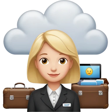 A thinking person with a thought cloud showing a modern hotel reception β front desk, receptionist, suitcases, cozy lighting. Cute emoji style, soft and clean. emoji