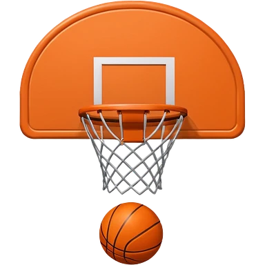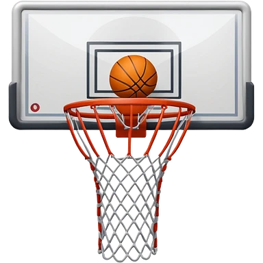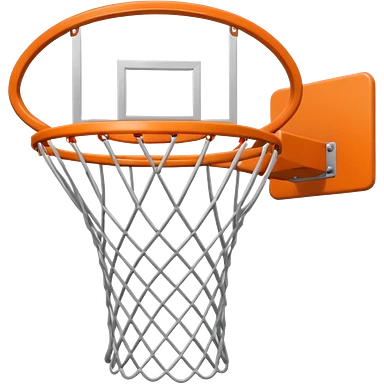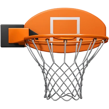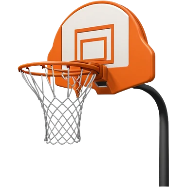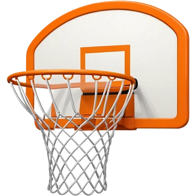 basketball hoop object icon, backboard and rim, net details, 3D cartoon, mobile game icon style, centered, clean background, no text, no watermark emoji