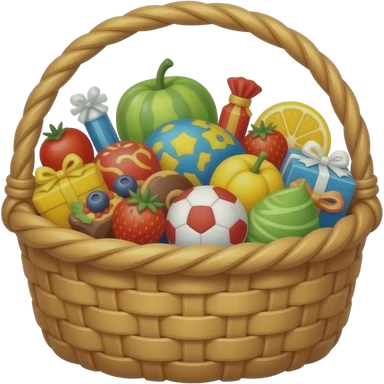 basket with groceries: milk, bread, sausage, eggs, potatoes, carrots, onions, cabbage emoji