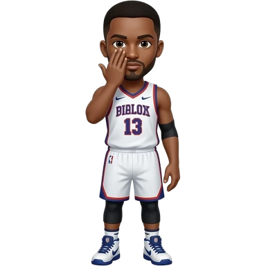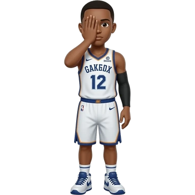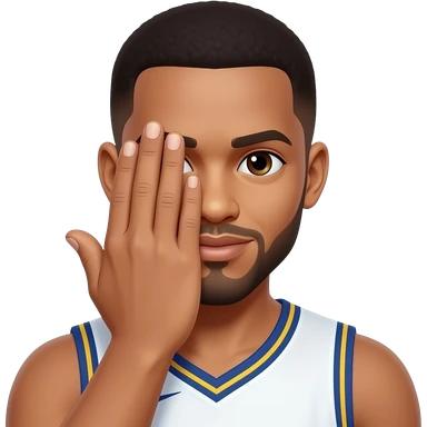 basketball player with his hand over his face with only three fingers up emoji