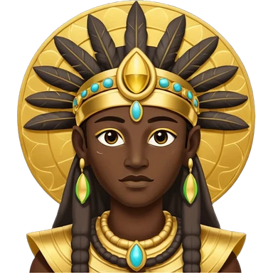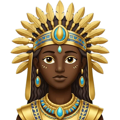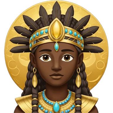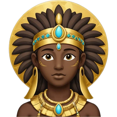 Bilquis from American Gods with dark skin, dark brown long hair, gold outfit emoji