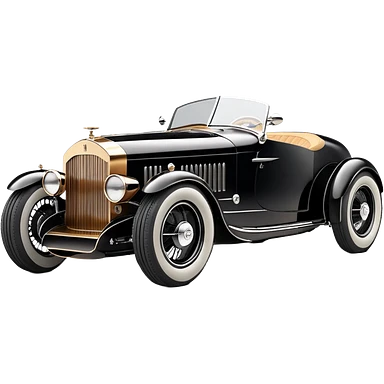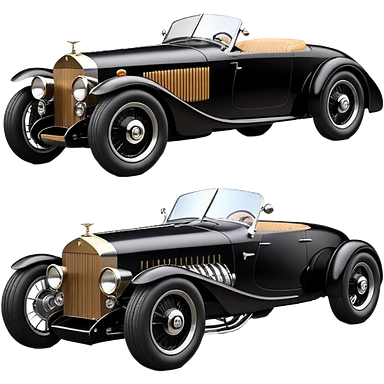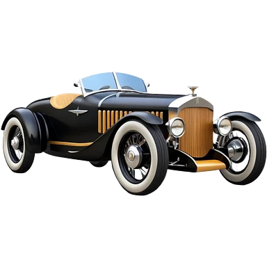 Batgirl’s black Bare bones drag strip modified (fenders removed) chopped streamlined sporty roadster that is a (stripped down) hot street rodded engine sports car 1932 Rolls Royce Woody futuristic wide racing wheels that are held strong by advanced suspension and steering emoji