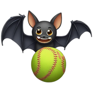 purple and black vampire bat large cute eyes with highlight glare wings flying in front of large dripping crescent moon emoji