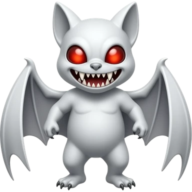 light macaron colors, white bat, vampire bat, fangs, red eyes emoji