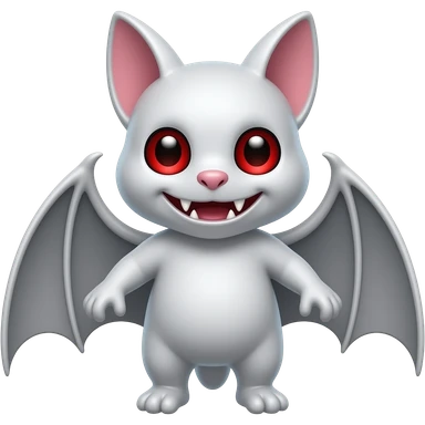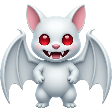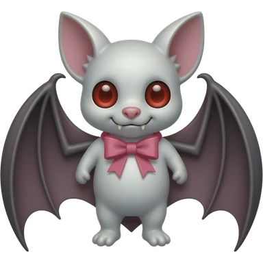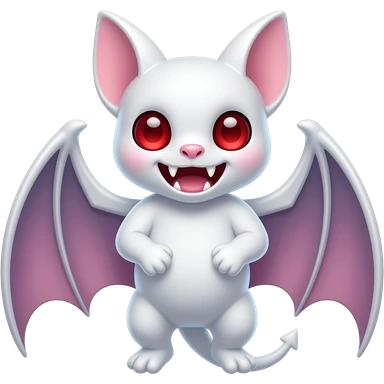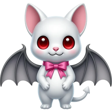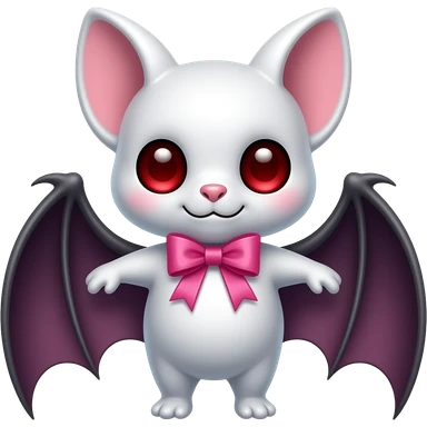white, albino vampire bat cute, pink ribbon, red eyes emoji