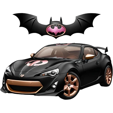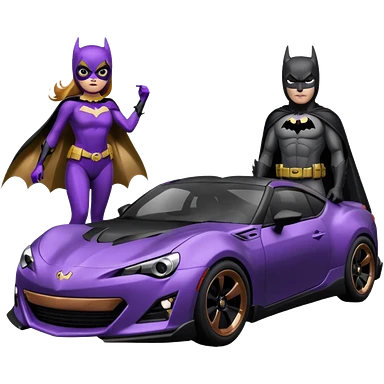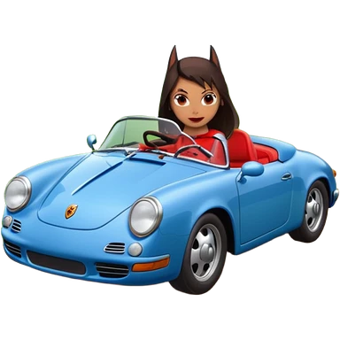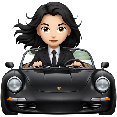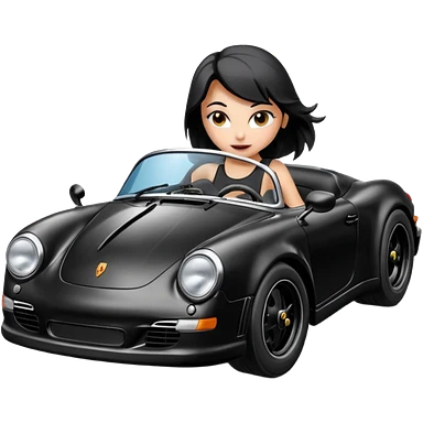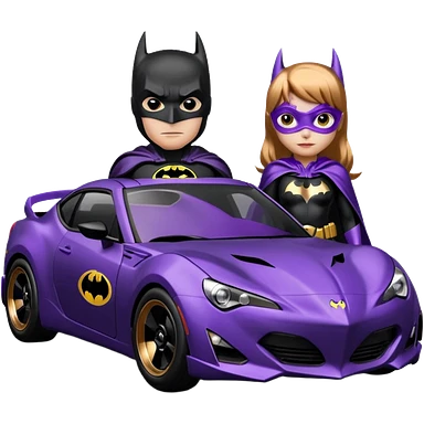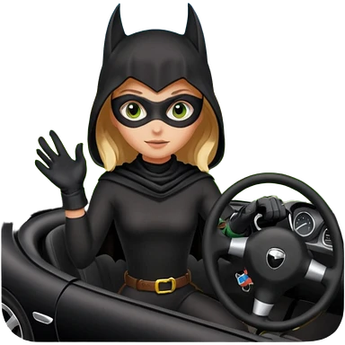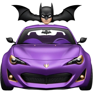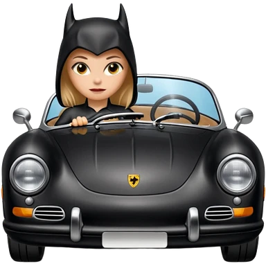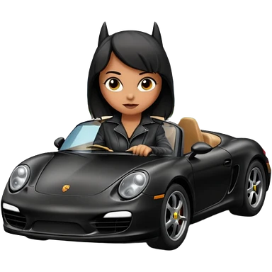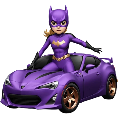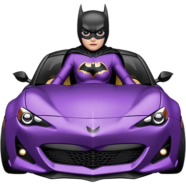 BatGirl driving her satin-black and rose gold 56 Porsche spider too fast in the country despite the rainy conditions making the tires slippery sliding sideways and her black hair flutter (purple shiny latex catsuit emoji | AI Emoji Generator