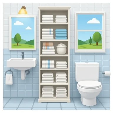 Bathroom cabinet with a lot of towels inside emoji | AI Emoji Generator