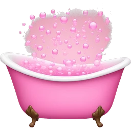 girl with wavy long ponytail brown hair, brown eyes, light to medium complexion, long lashes, lying full body in a white bathtub with bubbles with one foot out of the tub, side view emoji