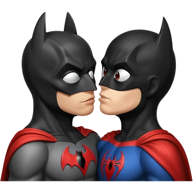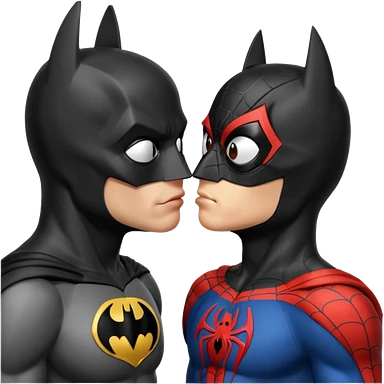 Batman and spiderman kissing emoji