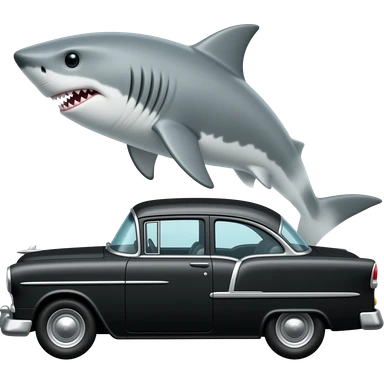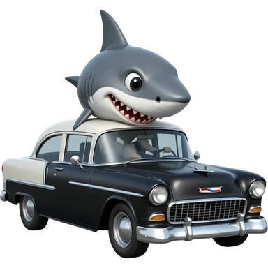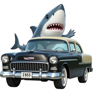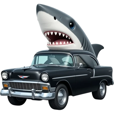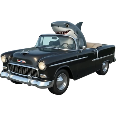 shark driving black 1955 chevy 3/4 view emoji