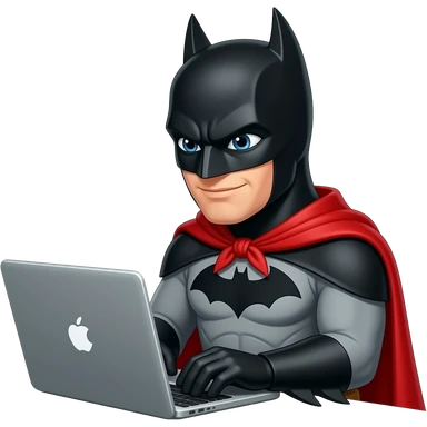 Batman with red robe working as a freelancer on a laptop emoji
