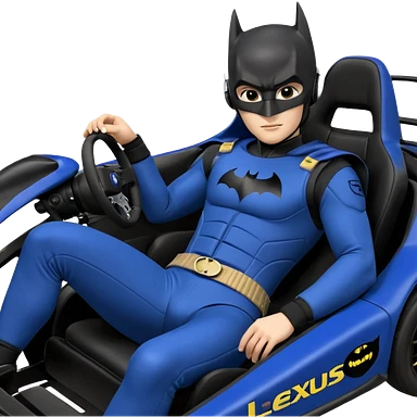 scale anime racing sexy muscular Batman’s masculine midnight-colored tight outfit 1970’s tv style dark knight stealthy accurate sporty safe plush deluxe Lego off-road pursuit drifting F1 car lexus (black hair,reclining and relaxed torso and shoulders back against seat) rallycross kart emoji