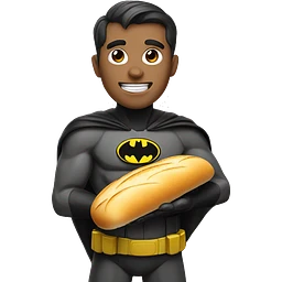 batman head only, with black beard,black hair, and brown eyes in a batman mask. a few white hairs in the beard emoji