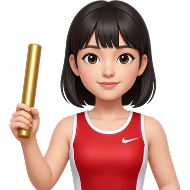 An Asian girl wearing a red track and field uniform with a baton in her left hand emoji