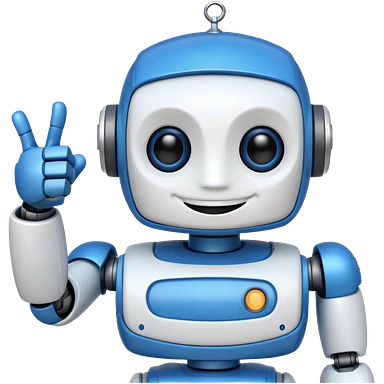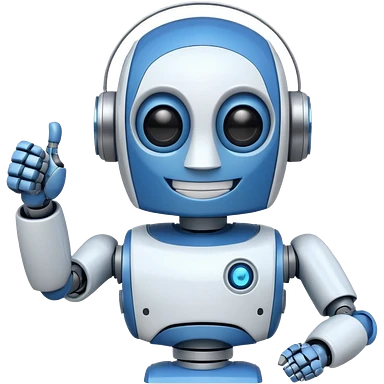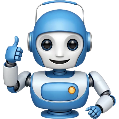 A blue and white robot smiling and winking with one eye, making a thumbs-up sign with one hand. emoji