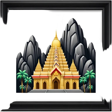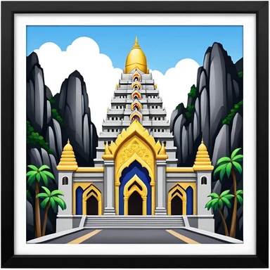 Mogao Caves Dunhuang with colorful Buddhist murals, simplified emoji style with bold outlines and bright colors, cartoon style cave entrance with paintings emoji