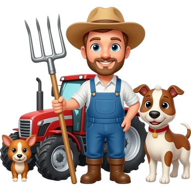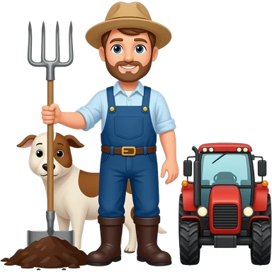 bauer mit tieren und mistgabel und traktor emoji