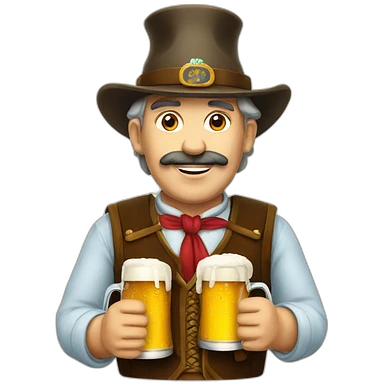bavarian october fest visitor in super mario style. With a grean hat, blue and white shirt and brown leather pants. emoji