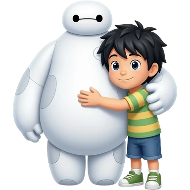 Baymax hugging Hiro Hamada of Big Hero 6, make Hiro smaller than baymax emoji
