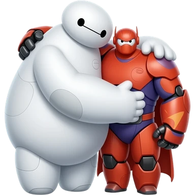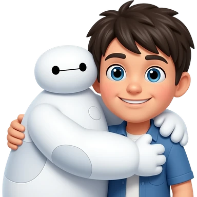 Baymax hugging Hiro Hamada of Big Hero 6, make Hiro smaller height than Baymax. Hugging side by side emoji