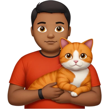 Indian black chubby guy with black hair in red t-shit with orange cat emoji