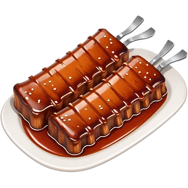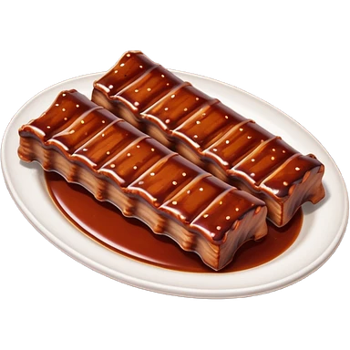 bbq ribs object icon, cooked ribs with barbecue sauce glaze, 3D cartoon, mobile game icon style, clean background, no text, no watermark emoji