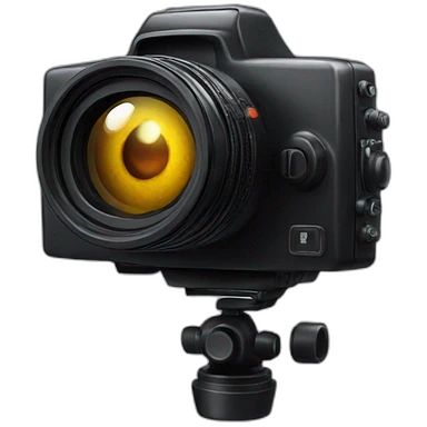 Black professional camera, large lens, focused on a landscape, sleek and modern design, minimalistic, on a white background, no extra details. emoji