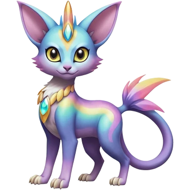 Colorful soft vibrant pastel shiny gradiented Meloetta-Spyro-Sphynx-Lykoi-Sergal-Renamon-Wargreymon-Pokémon-Digimon-Fakémon-fusion-hybrid-creature emoji