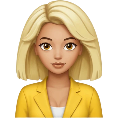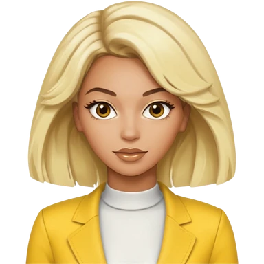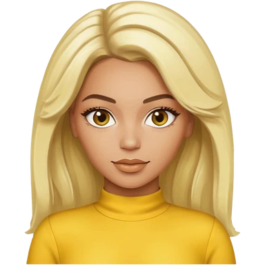 Beyonce brown eyes, platinum blonde hair, yellow outfit emoji