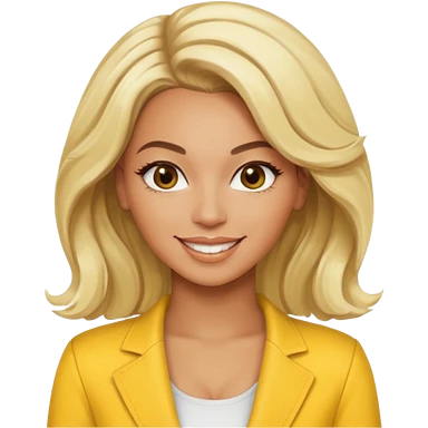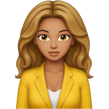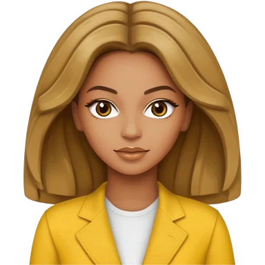 Beyonce brown eyes, dark blonde hair, yellow outfit emoji