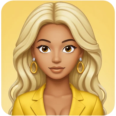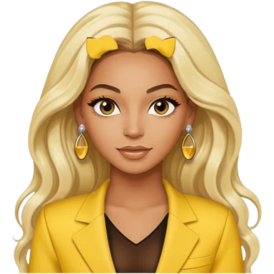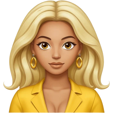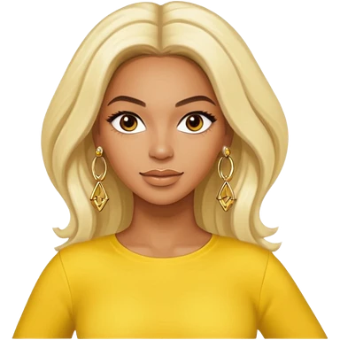 Beyonce brown eyes, long platinum blonde hair, yellow outfit with earrings emoji