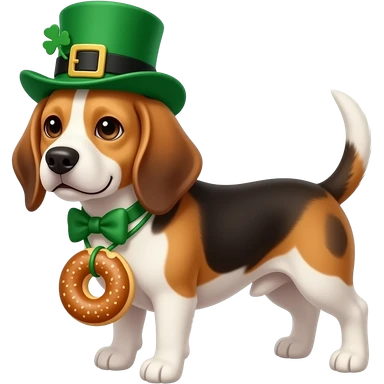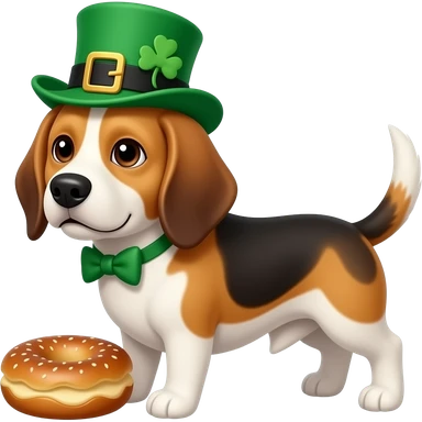 Leprechaun beagle with a bagel emoji