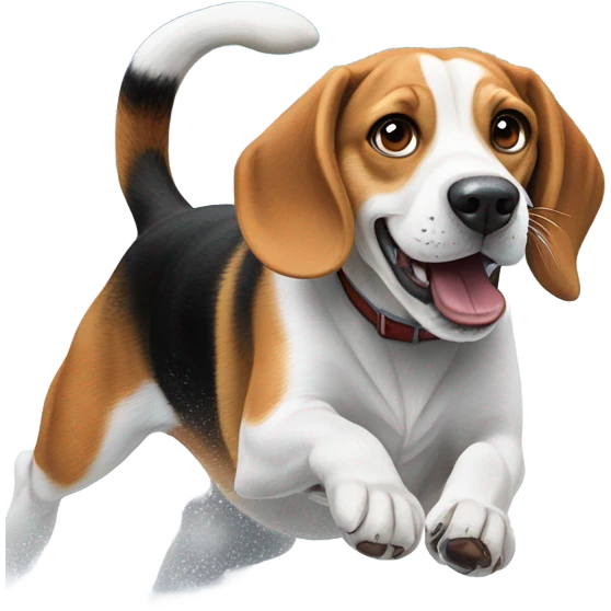 Beagle with the littlest white patch of fur by his nose and he’s in the snow and show his whole body with snow in the back emoji