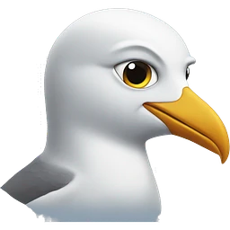 an emoji of a seagull screaming loudly while flying above the sea, simplified drawing emoji style emoji