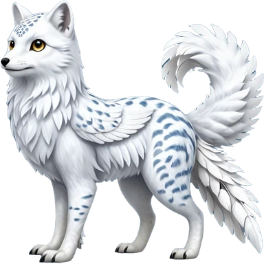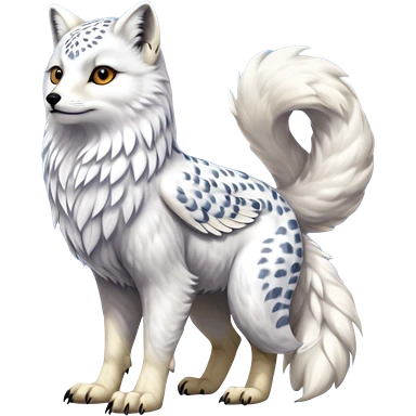 Beaked beaky Realistic wild natural elegant pretty beautiful handsome shiny colorful furry 4-legged digitigrade snow-leopard-snowy-owl-gryphon-griffin-arctic-fox-fusion-hybrid-fursona-furry-animal-creature, full body, hyper-realism, long tufted tailemoji