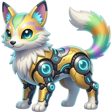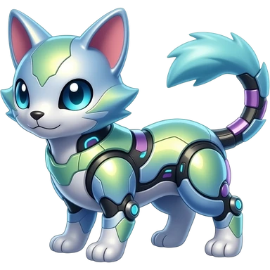 Shiny exotic animalistic feral Colorful glowing glossy smooth soft silky Futuristic Cyber-Vernid-Trico-Meloetta-Latias-Koraidon-Peppercat-Protogen-Pokémon-Digimon-Fakémon-fusion-hybrid-creature emoji