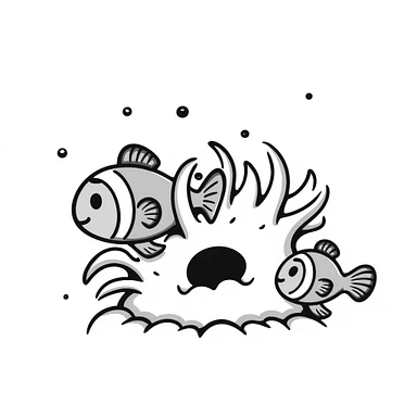 A hand-drawn cute clown fish with stripes emoji
