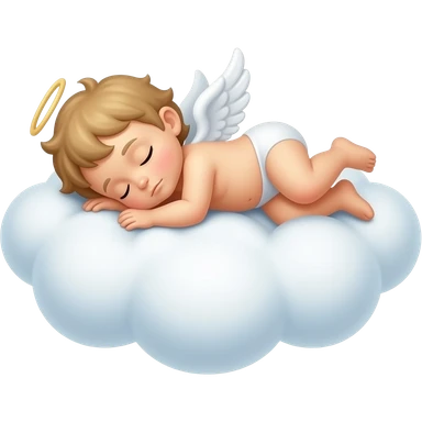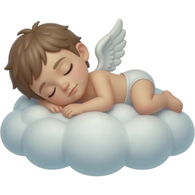 Realistic Photo of pale cupid asleep lying on a cloud. Only face emoji