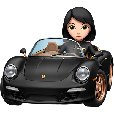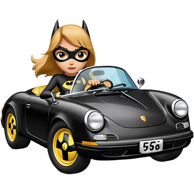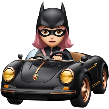 BatGirl driving her satin-black 56 Porsche spider too fast in the country despite the rainy conditions making the tires slippery sliding sideways emoji