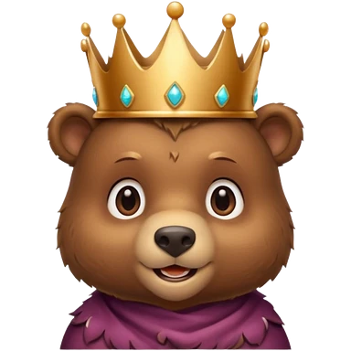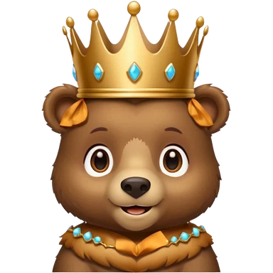Bear Prince – brown bear cub with a shiny bronze crown, gentle smile. emoji