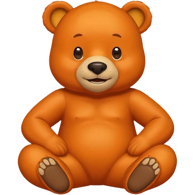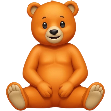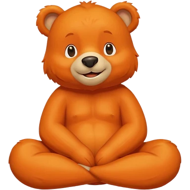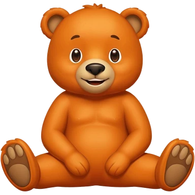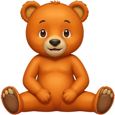 Create a orange friendly bear, make him look like from a kid cartoon and make him smile. Show his whole body. Make him look shy and cross his leg emoji