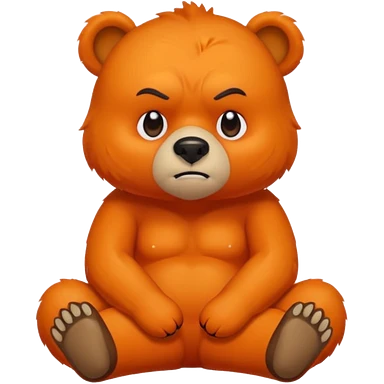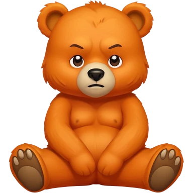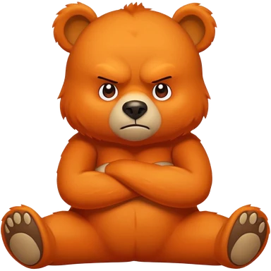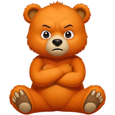 Create a orange friendly bear, make him look like from a kid cartoon. Show his whole body. Make him look shy and cross his leg while he is standing. make him look mad emoji