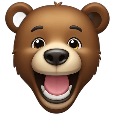 Endearing brown bear head with cute smile and bright green eyes, wearing white ushanka hat with detailed Russian eagle emblem in middle, iOS emoji style emoji